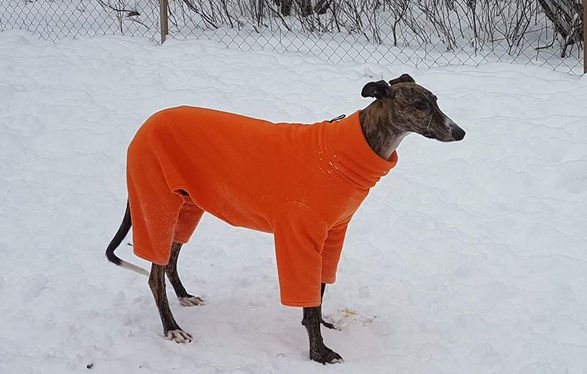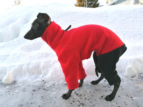 Fleece-jumpsuitteja saa ihan kaikenkokoisille koirille.