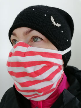 Valmistan kasvosuojaimia naisille, miehille ja lapsille. Saatavana solmittavana (suosittelen) tai kuminauhoilla. Nappipangat ovat käteviä esim. hoitohenkilöille, jotka pitävät maskeja pitkän aikaa päällä.