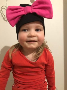 Valmistan lapsille laadukkaasta puuvilla/elastaanitrikoosta pipoja, joissa on rusettisomisteet.
