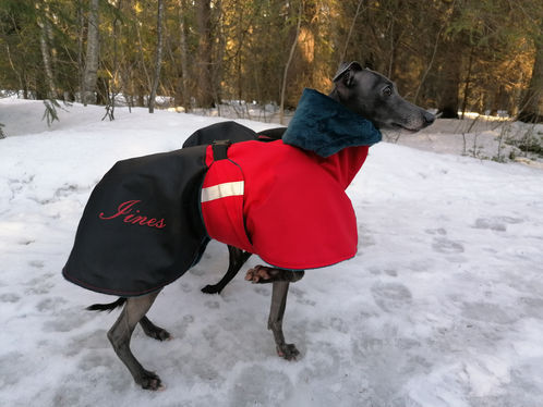 Valmistan takkeja toiveittesi mukaan mittatilauksena toiveiden mukaisesti valitsemillasi kankailla. Kauttani saa takit myös painettuna koirasi nimellä.